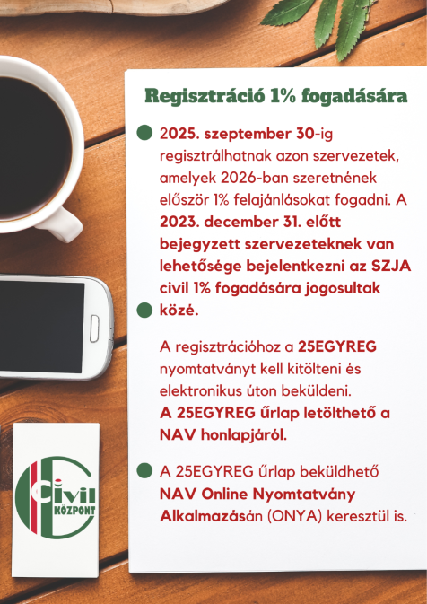 regisztrálhatnak azon szervezetek, amelyek 2026-ben szeretnének először 1% felajánlásokat fogadni. A 2023. december 31.