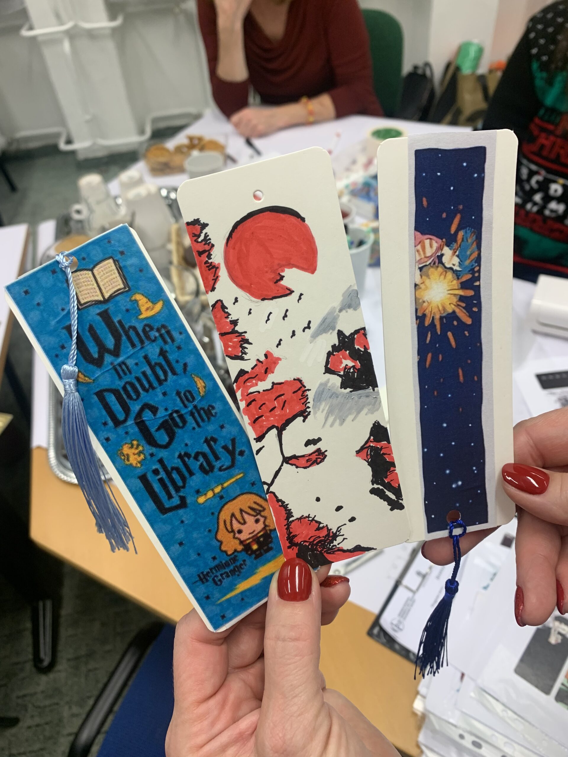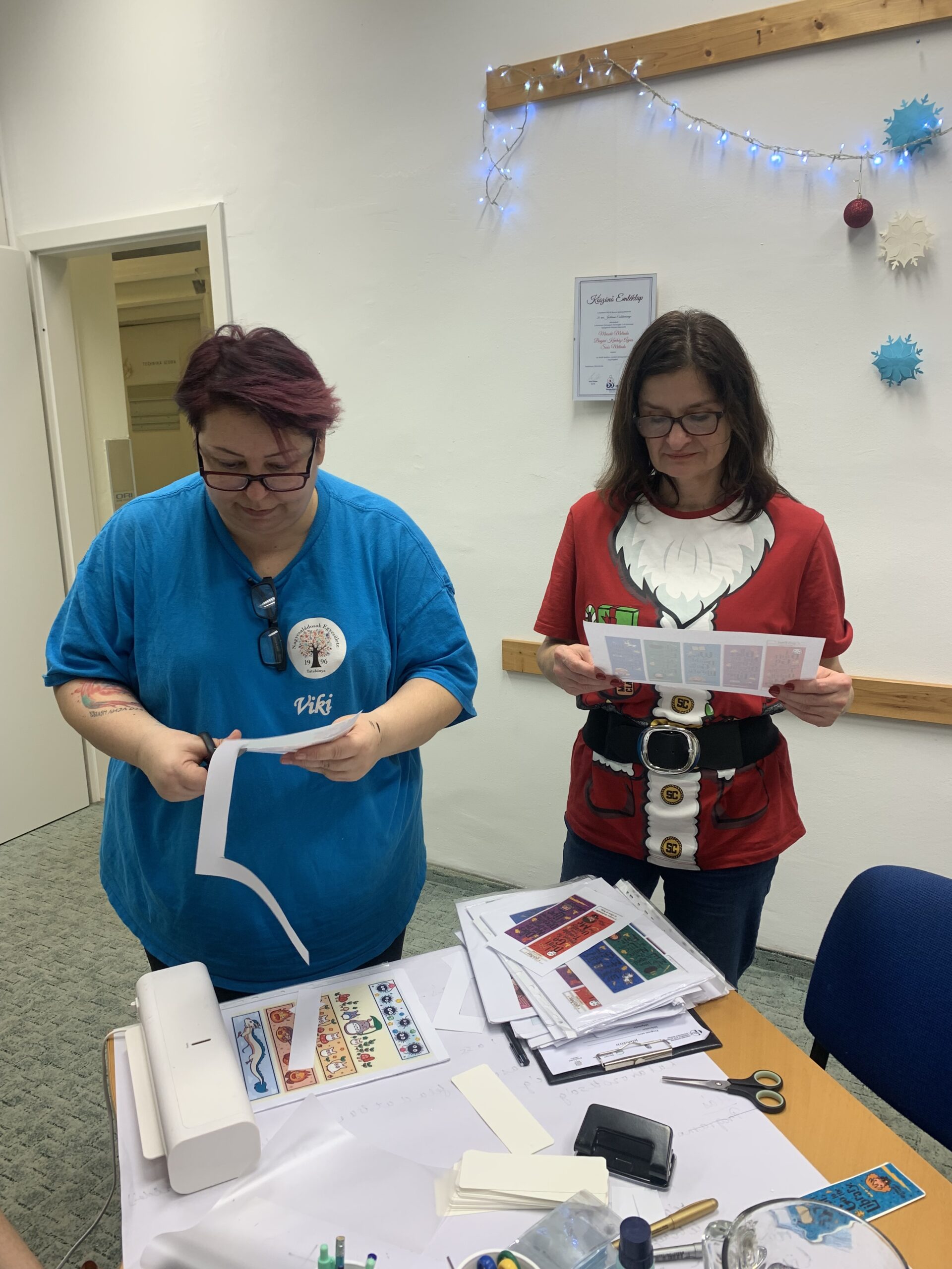 A délutánon hangulatos karácsonyi zenével, forró teával vártuk az érdeklődőket, akik apró karácsonyi ajándékokat készíthettek sajátkezűleg, a Tatabányai Nagycsaládosok Egyesülete és a T.E.A. – Geek és Popkultúra Klub önkénteseinek iránymutatása alapján. A szorgos kezek nyomán gyönyörű könyvjelzők, karácsonyi képeslapok, Mézi és hóember figurák készültek.